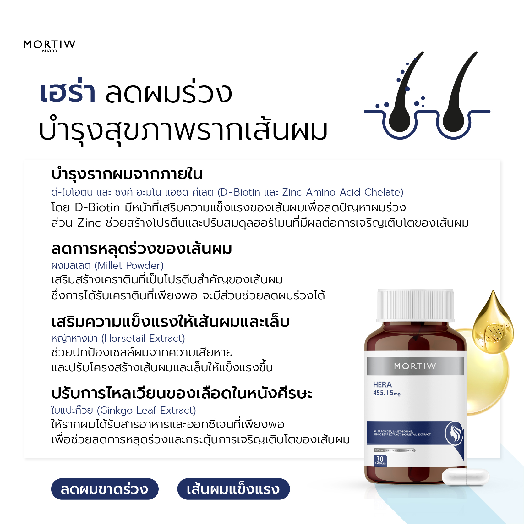 HERA เฮรา (ผลิตภัณฑ์เสริมอาหาร) บำรุงสุขภาพเส้นผมและลดปัญหาผมร่วง