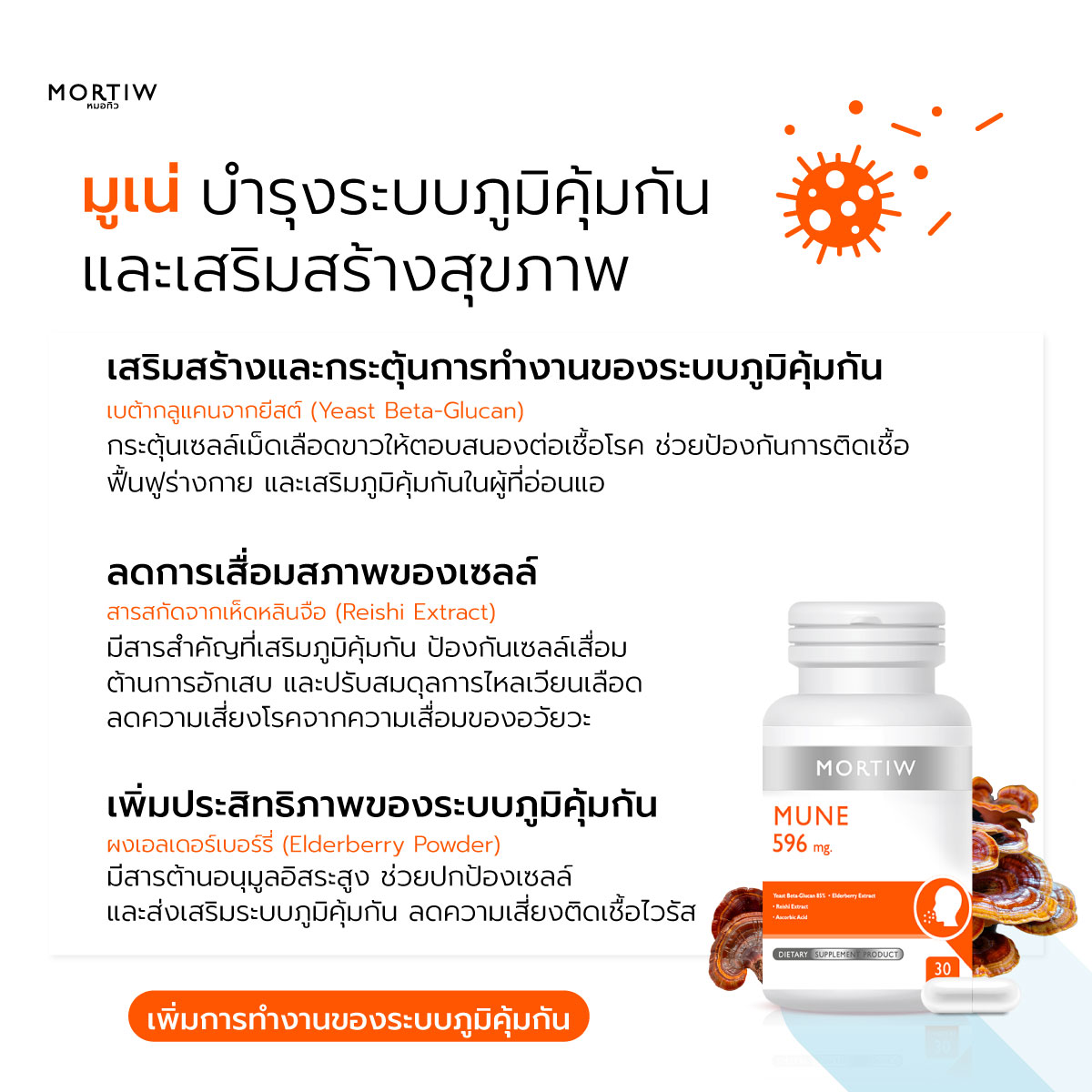 ✓ เพิ่มประสิทธิภาพการทำงานของระบบภูมิคุ้มกัน