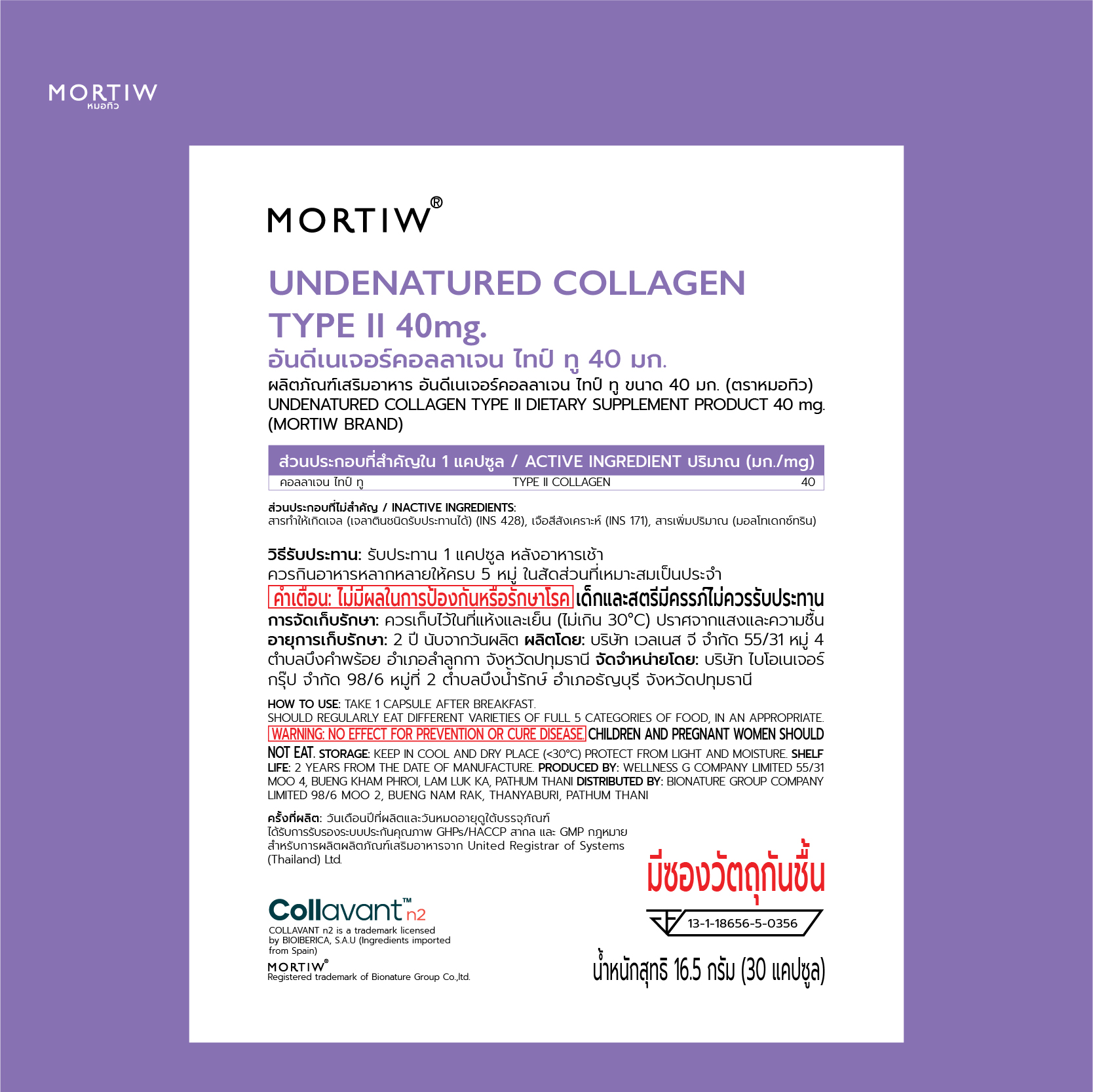 1.TYPE II COLLAGEN / คอลลาเจน ไทพ์ ทู 40 มก.