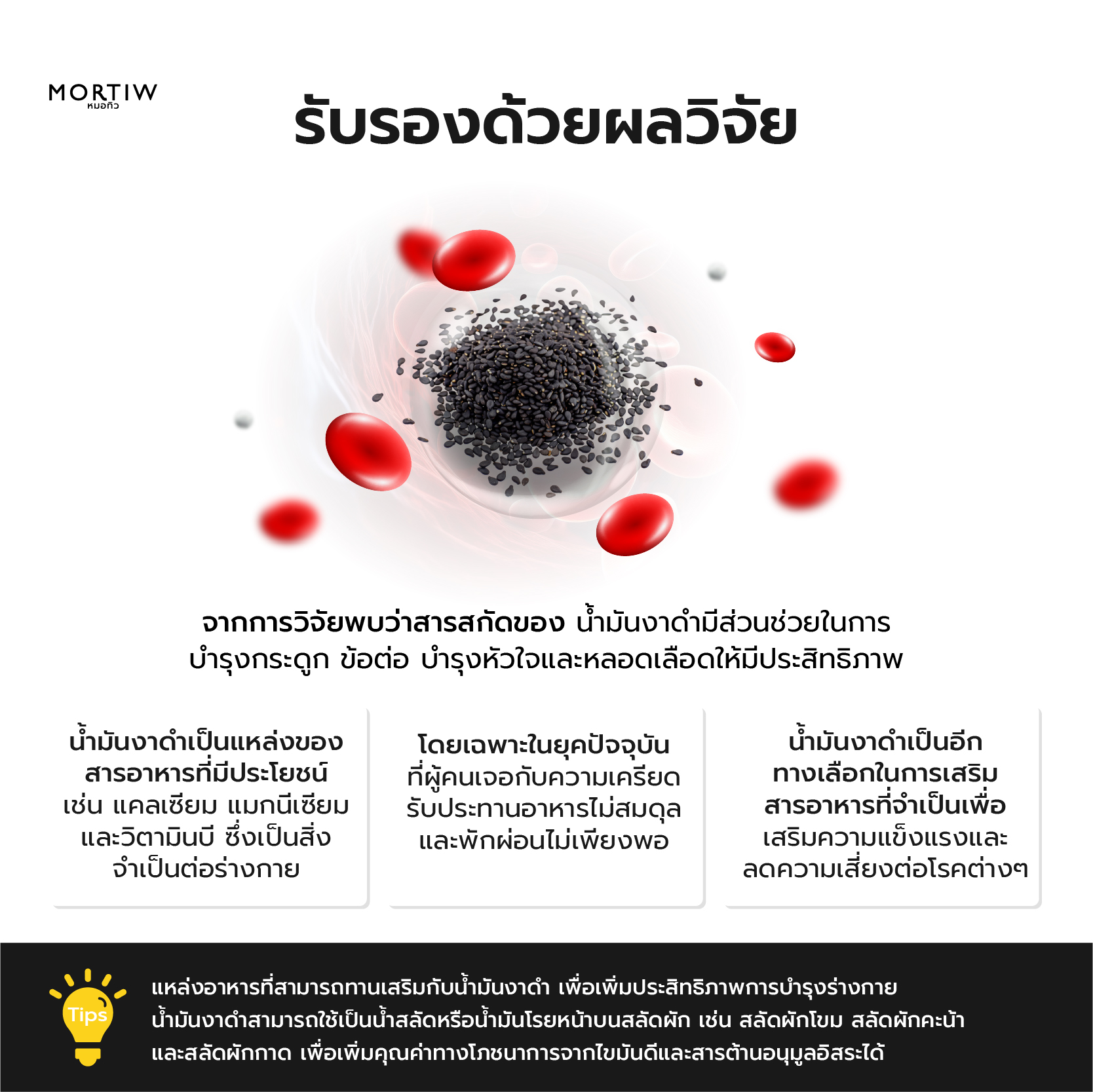 • น้ำมันงาดำสามารถใช้ทาเต้าหู้หรือถั่วต้มก่อนเสิร์ฟ ช่วยเพิ่มรสชาติและบำรุงร่างกายด้วยสารอาหารจากน้ำมันงาดำ