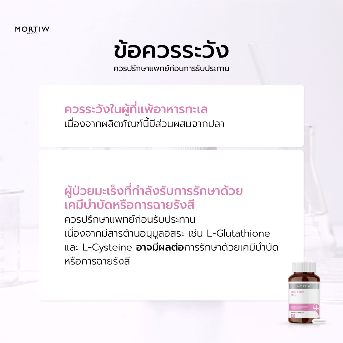 • ควรระวังในผู้ที่แพ้อาหารทะเล มีผลิตภัณฑ์จากปลา