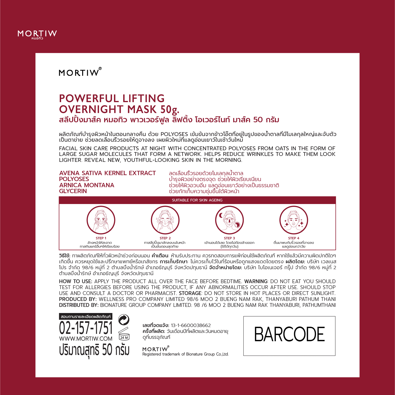 วิธีใช้ : ทาผลิตภัณฑ์ให้ทั่วผิวหน้าในช่วงก่อนนอน