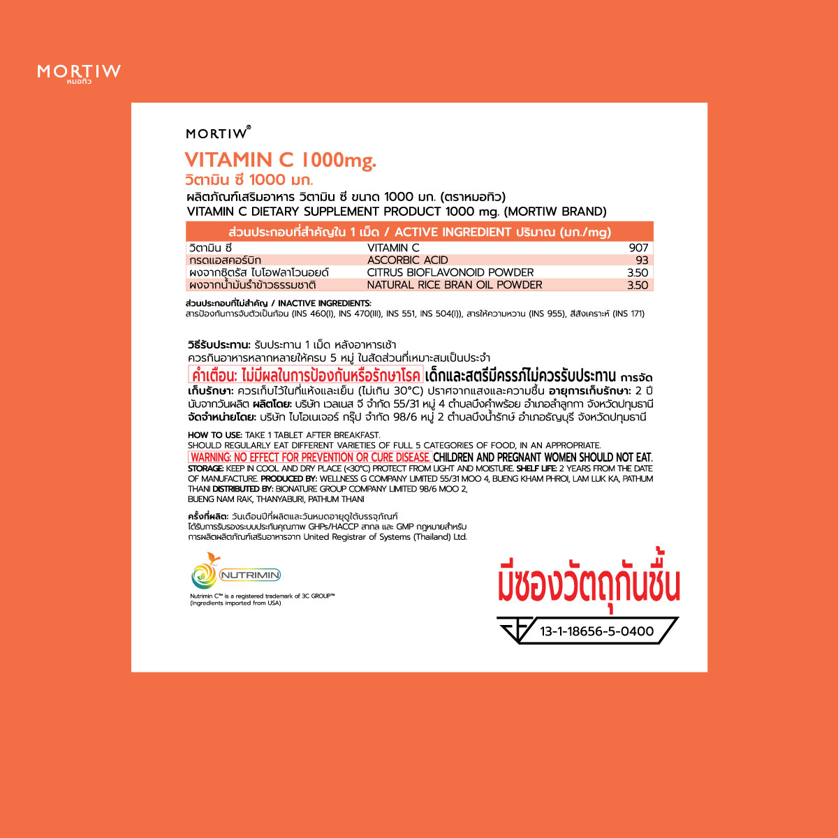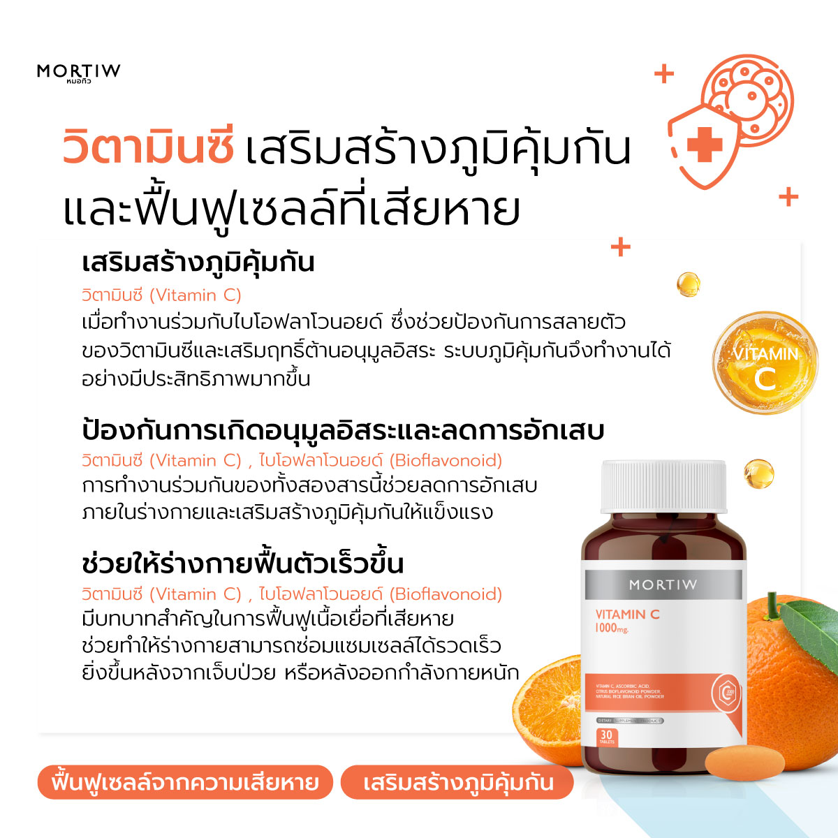 Vitamin C 1000 mg. วิตามิน ซี 1000 มก. (วิตามิน) เสริมสร้างภูมิคุ้มกันของร่างกาย และฟื้นฟูเซลล์ที่เสียหายด้วยวิตามินและไบโอฟลาโวนอยด์